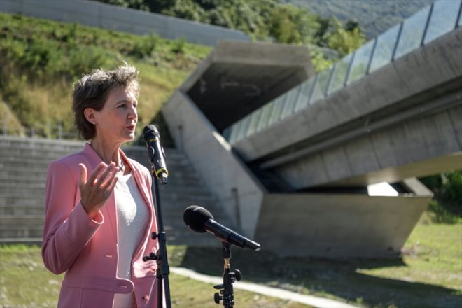 "Cette nouvelle ligne de train à travers les Alpes, c'est l'oeuvre du siècle pour notre pays", a confié la présidente de la Confédération à l'AFP.