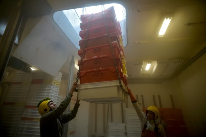 Le poisson est ensuite transporté par camion à travers l'Angleterre et le tunnel sous la Manche, jusqu'en Belgique pour y être vendu aux enchères à Ostende, port d'attache du bateau.
