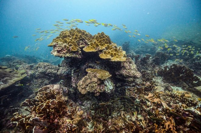 Depuis, des dizaines de requins à pointes noires, des tortues vertes ou imbriquées se meuvent dans les eaux peu profondes. Des requins-baleines, les plus grands poissons au monde, en danger d'extinction, ont été repérés au large des côtes.