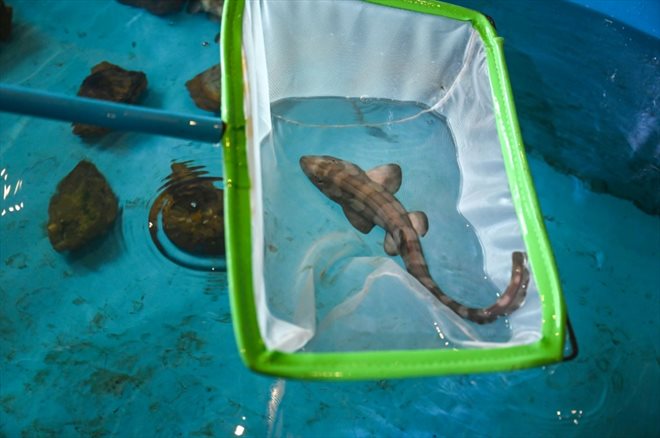 Un requin bambou qui va être relâché au large de Phi Phi, en Thaïlande, le 25 novembre 2021 (AFP/Lillian SUWANRUMPHA)