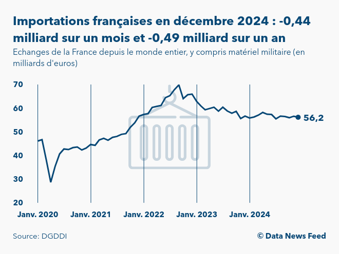 Commerce extérieur : 56,2 milliards d'euros d'importations en décembre 2024