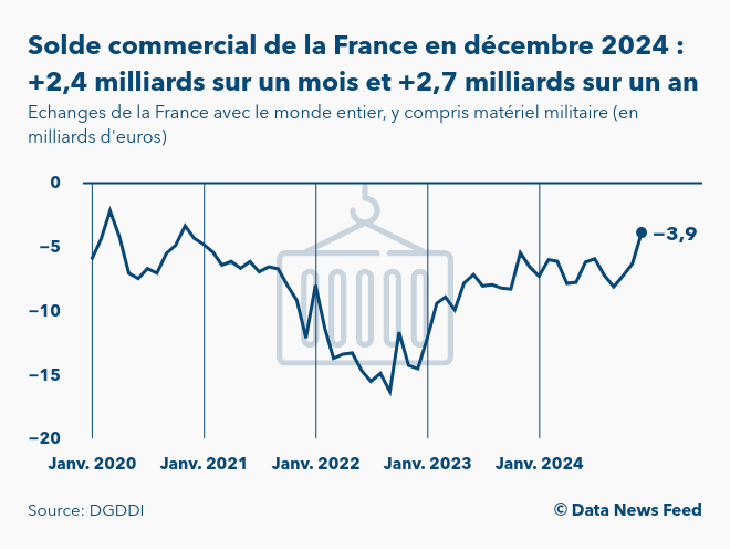 Le déficit du commerce extérieur de la France atteint -3,9 milliards d'euros en décembre 2024