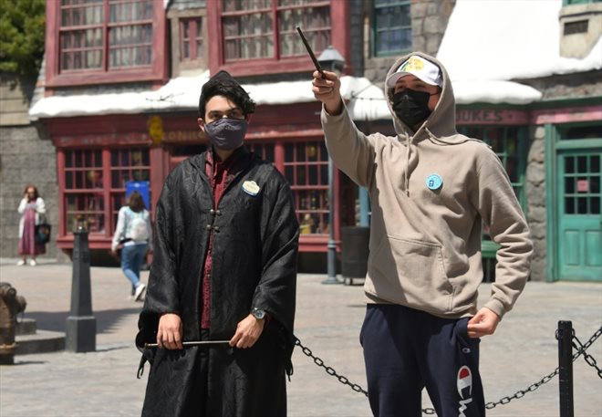 Nekia Griffin, 46 ans et passionnée par Harry Potter, assure à l'AFP que cette venue au parc Universal est sa "première vraie sortie" depuis le début de la pandémie en Californie, en mars 2020.