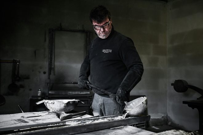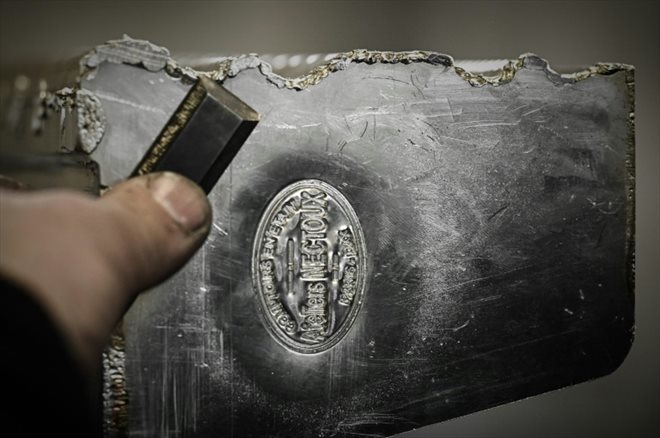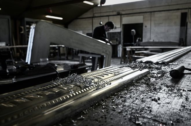 "Avant, on travaillait uniquement sur des comptoirs traditionnels mais les demandes se modernisent", constate l’ouvrier aux mains recouvertes d’étain, formé "sur le tas" au mitan des années 2000 dans les anciens ateliers de Puteaux.