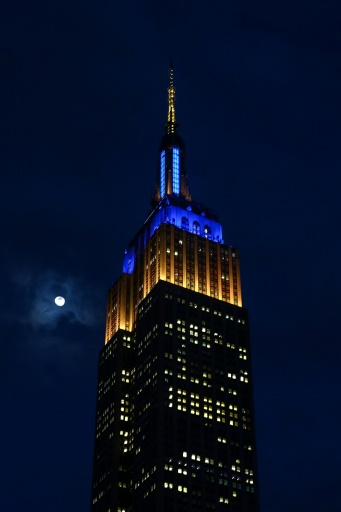 Le sommet de l'Empire State Building, gratte-ciel précurseur en matière d'économies d'énergie, illuminé le 15 mai 2019 (GETTY IMAGES NORTH AMERICA/AFP/Mike Stobe)