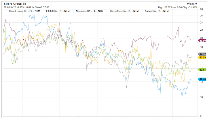 En Bourse, le titre reste raisonnablement valorisé. À 37,6 €, Sword affiche une capitalisation de 358 M€, soit un multiple PER 2025 de 12,4x, en dessous de certaines sociétés comparables, exhibant pourtant des fondamentaux moins rutilants.