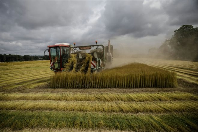 Le groupe Depestele, premier producteur privé en Europe, "collecte jusqu'à 12.000 hectares de lin fibre contre 5.000 hectares il y a 10 ans. C'est une très grosse évolution et derrière, on voit qu'il y a un vrai intérêt pour cette matière qui pousse et qui est travaillée en Europe", déclare à l'AFP Romain Depestele, chargé de la direction du groupe familial.